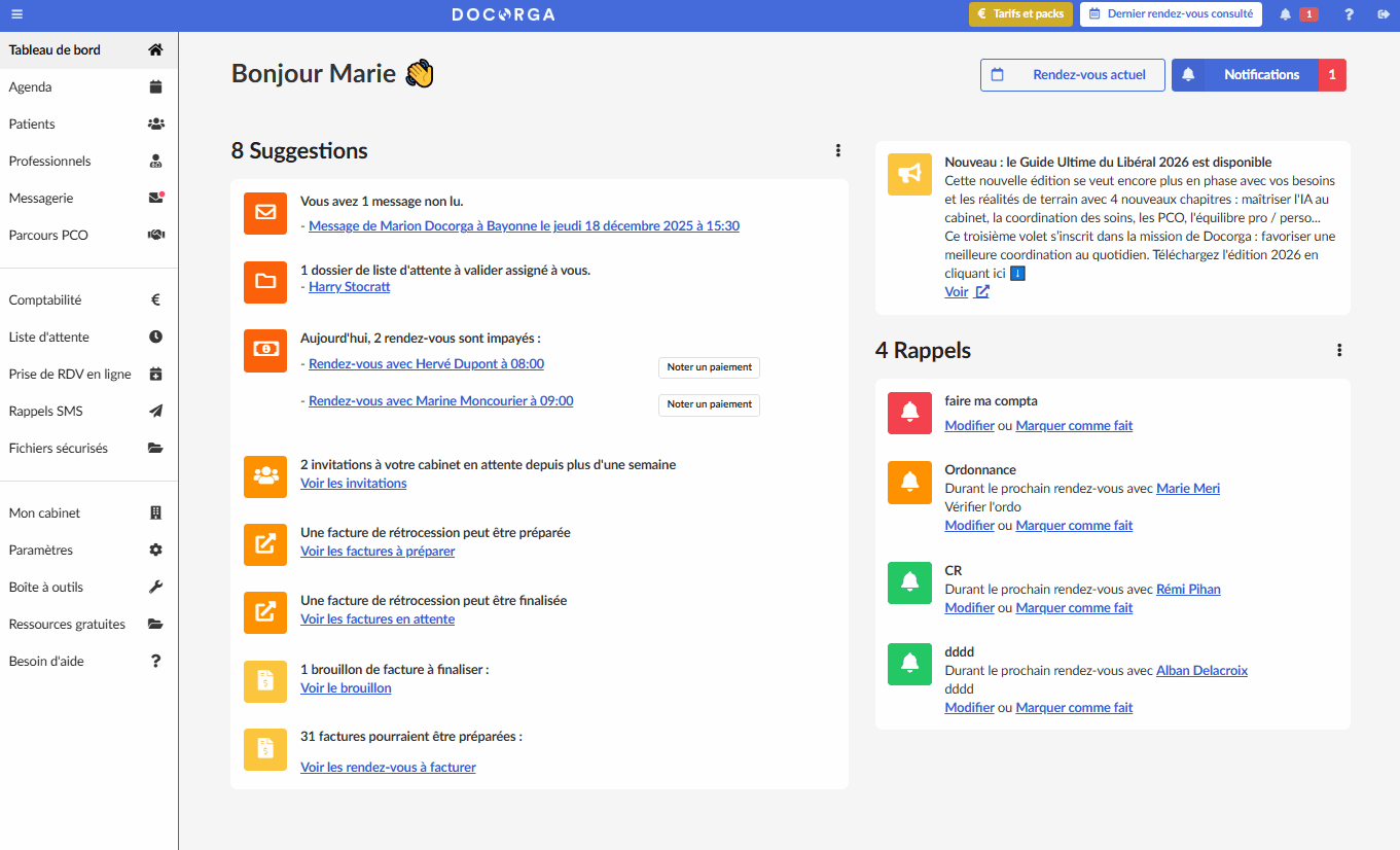- Cliquez sur Transition Doctolib vers Docorga - C’est parti !